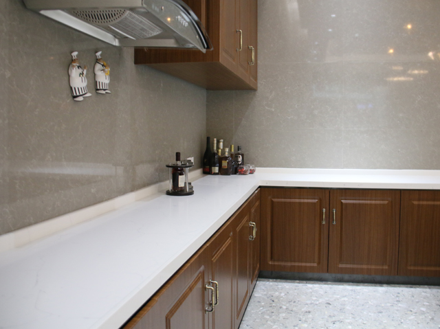 多年來(lái),日木始終秉承“精工品質(zhì),匠心鑄造”的理念,專業(yè)為廣大消費(fèi)者提供花色豐富、健康環(huán)保、實(shí)用美觀的產(chǎn)品。自主研發(fā)的石英石由高純石英石晶體及輔料通過(guò)專業(yè)加工技術(shù)在真空條件下制造而成,彎曲強(qiáng)度高達(dá)8000PSI,高壓成型密實(shí)度高,防滲透、零吸水率;食品級(jí)環(huán)保健康,純天然環(huán)保材質(zhì),可直接接觸食物,是一款新型環(huán)保高性能板材,可加工各類臺(tái)面板、家具板、規(guī)格板、工程板等墻地臺(tái)面材料,被廣泛用于星級(jí)酒店、高端別墅住宅裝修、機(jī)場(chǎng)、高鐵、辦公樓等墻面、地面裝飾,深受市場(chǎng)青睞。